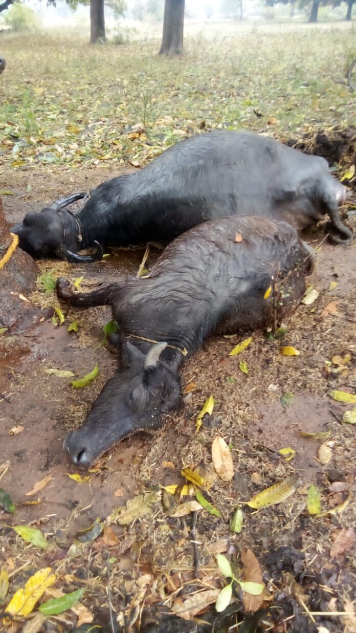 वन्य जीव संरक्षक एवं समाज सेवी शशिधर अग्रवाल से प्राप्त जानकारी के अनुसार तहसील मुख्यालय अनूपपुर से 08 किलोमीटर दूर स्थित कांशा गांव निवासी भानू यादव पिता लल्ला यादव की एक नग भैंस जो रविवार की रात घर की गौशाला में थी,अचानक तेज आधी,पानी के साथ आकाशीय बिजली के चपेट में आने से स्थल पर ही मृत हो गई।वहीं सोमवार की दोपहर 02 बजे के लगभग तहसील मुख्यालय अनूपपुर से 6 कि,मी,दूर स्थित कर्राटोला गांव के निवासी अमर सिंह की दो भैंस जो गांव के बाहर बगीचे के पास चर रही थी कि अचानक आंधी-तूफान के साथ आकाशीय बिजली गिरने से चपेट में आने पर दोनो की मृत्यु हो गई।दोनों घटनाओं पर पुलिस,प्रशासन एवं पशु चिकित्सा विभाग द्वारा पशु मालिकों की सूचना पर कार्यवाही की गई,निरंतर हो रही वर्षा के कारण आमजन परेशान है।