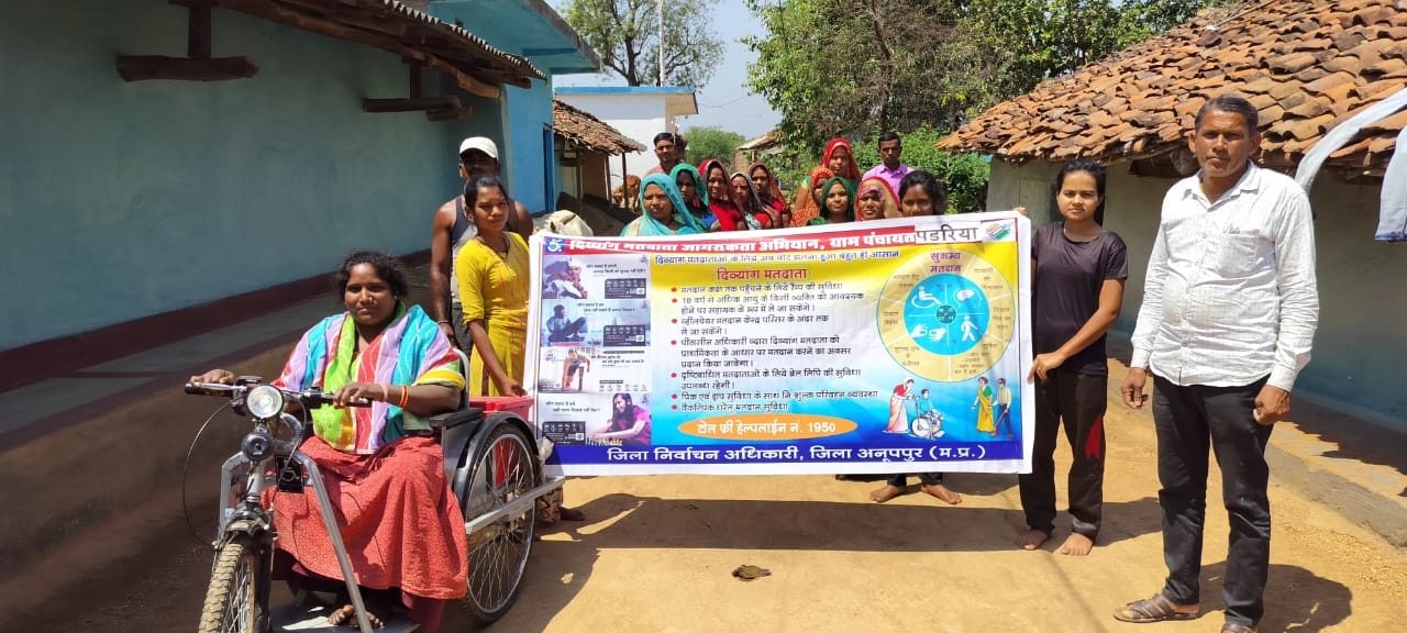 अनूपपुर जिले में शत्-प्रतिशत् मतदान के लक्ष्य को लेकर मतदाता जागरूकता कार्यक्रम आयोजित किया जा रहा है। जिसके अनुक्रम में जनपद पंचायत जैतहरी के ग्राम पंचायत पड़रिया में दिव्यांग मतदाता के नेतृत्व में मतदाता जागरूकता रैली का आयोजन कर मतदाताओं से लोकसभा निर्वाचन के मतदान दिवस 19 अप्रैल को प्रातः 7 बजे से शाम 6 बजे तक अपने मतदान केन्द्रों में पहुंचकर मतदाताओं से अनिवार्य रूप से मतदान करने की अपील की गई। इस दौरान रैली में मतदाता जागरूकता के स्लोगन के नारे लगाए गए।