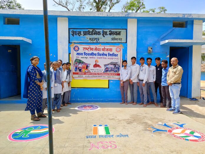 अनूपपुर शासकीय महाविद्यालय जैतहरी की राष्ट्रीय सेवा योजना इकाई द्वारा ग्राम लहरपुर में सात दिवसीय विशेष शिविर आयोजित किया जा रहा है। शिविर के तीसरे दिन राष्ट्रीय सेवा योजना के स्वयंसेवकों ने परियोजना कार्य के अंतर्गत मतदाताओं को जागरूक करने के लिए रंगोली बनाकर मतदान करने का संदेश दिया इसके साथ ही स्वयंसेवकों ने ग्रामीणजन को रैली निकालकर सभी मतदाताओं को 19 अप्रैल को शत प्रतिशत मतदान करने हेतु जागरुक किया।