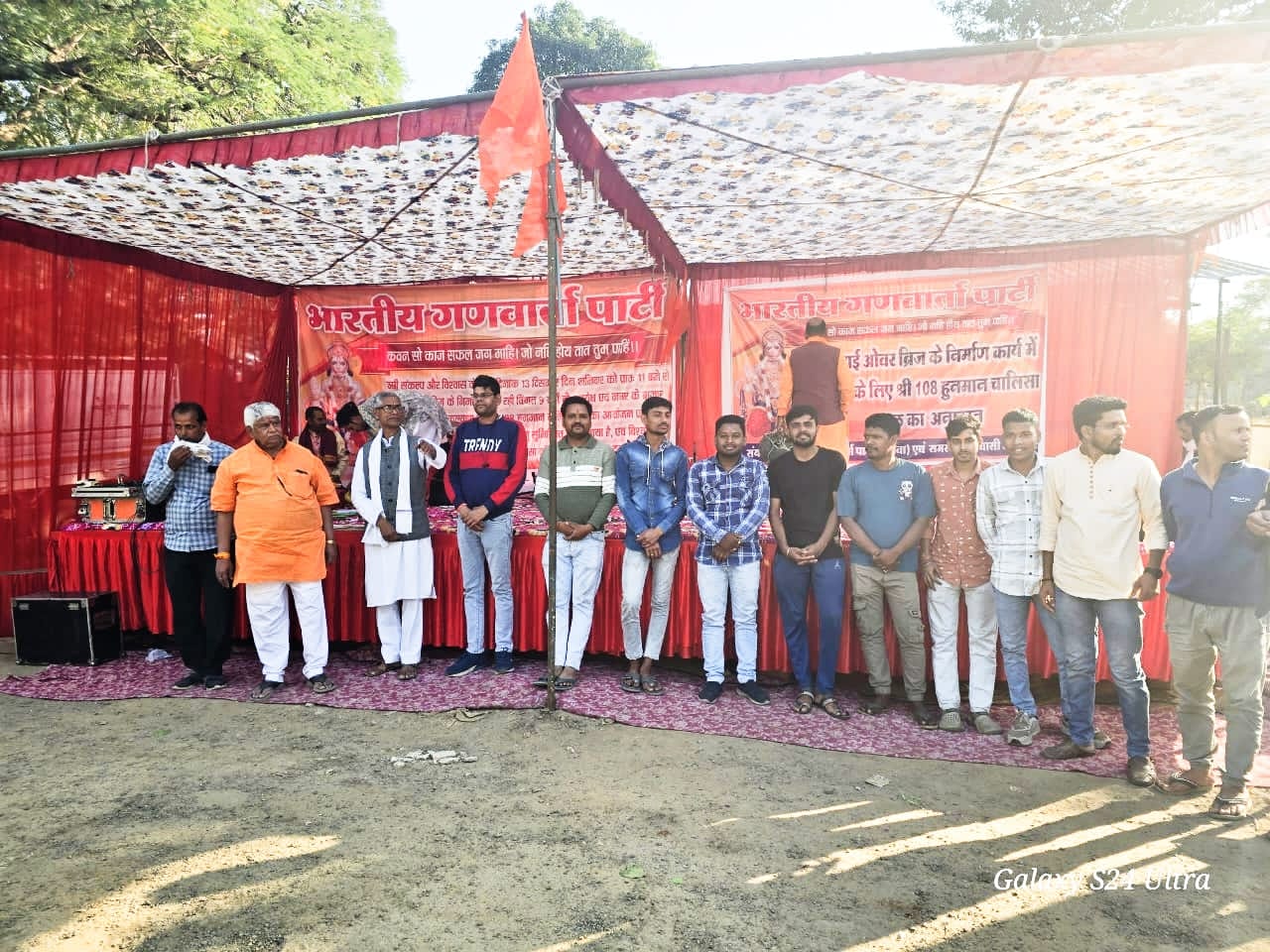 अनूपपुर (ब्यूरो)नगर के बहुप्रतीक्षित रेलवे फ्लाईओवर ब्रिज निर्माण में बीते 9 वर्षों से जारी अत्यधिक देरी के विरोध में भारतीय गण वार्ता पार्टी (भगवा पार्टी) द्वारा शनिवार 13 दिसंबर को फ्लाईओवर ब्रिज निर्माण स्थल पर 108 हनुमान चालीसा पाठ का आयोजन शांतिपूर्ण एवं भक्तिमय वातावरण में संपन्न हुआ।