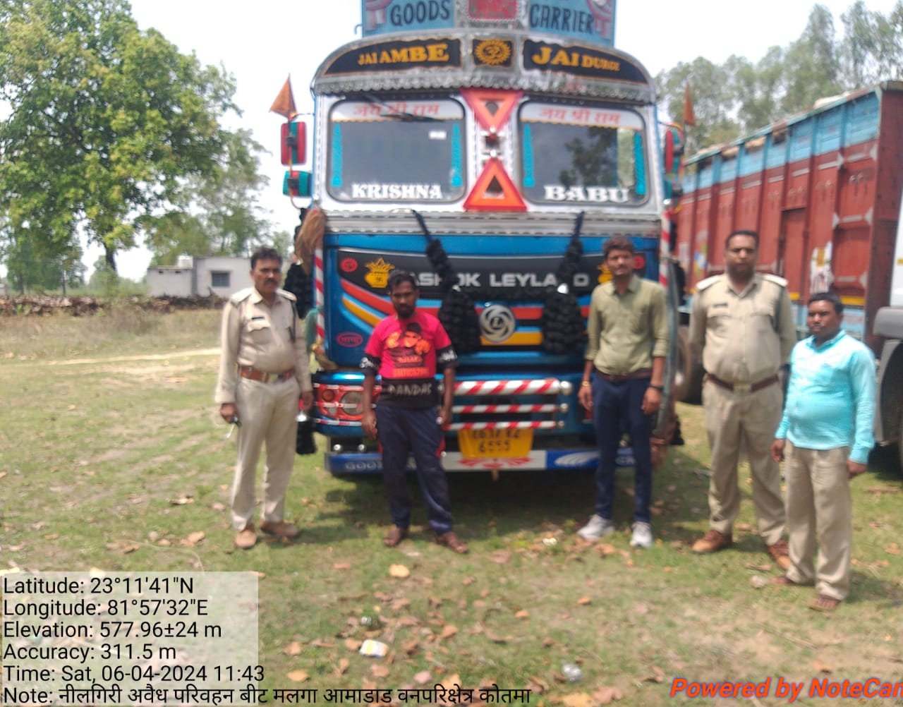 - *कोतमा* वनपरिक्षेत्र कोतमा द्वारा 06.04.2024 अवैध उत्खनन परिवहन एवं अवैध वन अपराधो पर वनमंडलाधिकारी अनूपपुर श्रद्धा पन्द्रे के मार्ग दर्शन में दिनांक 06.04.2024 को गस्ती के दौरान एक ट्रक वाहन क्रमांक CG17KZ6555 को नीलगिरी लकडी बिना टी पी के परिवहन करने के दौरान ग्राम आमाडाड में पकडा गया।जप्त वाहन नारायण दास चांडा निवासी जगदलपुर जिला बस्तर (छ.ग.) तथा वाहन चालक राजिम पिता सुन्दर बत्रा निवासी बेलगाव जिला कोरापुर(उडीसा) निवासी होना बताया गया है।जप्ती के समय वाहन चालक के पास नीलगिरी लकडी के परिवहन संबंधी कोई वैध दस्तावेज नहीं पाए गए हैं। बिना दस्तावेज के परिवहन करते पाए जाने पर वाहन फारेस्ट कैम्पस कोतमा में लाकर खडा कराया गया है।जप्त नीलगिरी लकडी लोड ट्रक वाहन का नियमानुसार कार्यवाही किया जा रहा है।उक्त कार्यवाही मे ए.के.निगम उपवनक्षेत्रपाल,दादूराम कुशवाहा बीटगार्ड मलगा,तुलसीदास नापित प.स.राजनगर,बृजेश गुप्ता बीटगार्ड चुकान,राघवेन्द्र तिवारी बीटगार्ड पौराधार की भूमिका सराहनीय रही है।