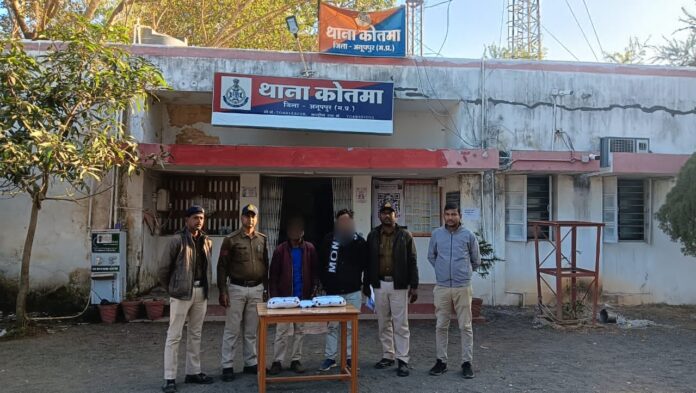अनूपपुर पुलिस अधीक्षक अनूपपुर के निर्देशन तथा अति. पुलिस अधीक्षक एवं एसडीओपी कोतमा के मार्गदर्शन में थाना प्रभारी कोतमा व उनकी टीम ने अवैध मादक पदार्थ गांजा 2.70 किलोग्राम कीमती 21000/- रूपये एवं 02 नग मोबाईल जप्त कर ,दो आरोपियों को गिरफ्तार जेल भेजा है ।