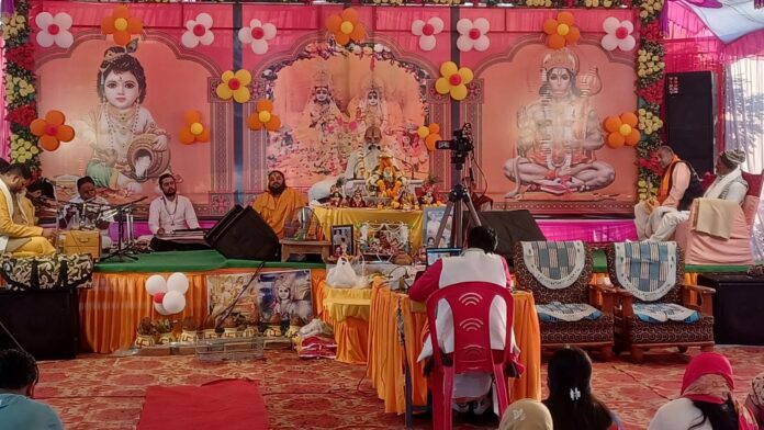 अनूपपुर अयोध्या के प्रतिष्ठित संत, श्री राम वल्लभा कुंज जानकी घाट अयोध्या के पीठाधीश्वर रामदास वेदांती महाराज ने श्रीमद् भागवत कथा सप्ताह के सत्र में रुक्मिणी प्रसंग पर विस्तृत प्रकाश डाला। इस अवसर पर उन्होंने रुक्मिणी के प्रेम, भक्ति और आत्मसमर्पण के गहरे अर्थों को श्रोताओं के समक्ष प्रस्तुत किया और कहा कि यह प्रसंग भगवान कृष्ण के साथ उनके अनन्य संबंधों का प्रतीक है।