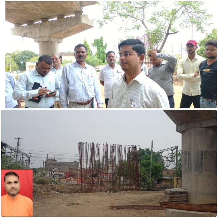 अनूपपुर। जिला मुख्यालय में निर्माणाधीन रेलवे फ्लाई ओव्हर ब्रिज लोगो के लिए अभिशाप बना हुआ है। रेलवे फ्लाई ओवर ब्रिज का भूमि पूजन भाजपा के मंडल अध्यक्ष, पूर्व विधायक अनूपपुर, पूर्व प्रभारी मंत्री, पूर्व मुख्यमंत्री ने किया, जिसके बाद अमृत योजना के तहत प्रधानमंत्री तक इस रेलवे फ्लाई ओवर ब्रिज का भूमि पूजन कर चुके है। जहां निर्माण कार्य में लगातार लेट लतीफी से हो रही आमजनों की परेशानियों को देखते हुए भगवा पार्टी के जिलाध्यक्ष कमलेश द्विवेदी ने इस ओर प्रशासन का ध्यान आकृष्ट कराया था, जिस पर कलेक्टर आशीष वशिष्ठ के निर्देशन में 2 जुलाई को अपर कलेक्टर अमन वैष्णव ने रेलवे फ्लाई ओवर ब्रिज का निरीक्षण करने पहुंचे, जहां सेतु निर्माण विभाग के एसडीओ देवन सिंह मरकाम एवं रेलवे पीडल्यूआई जूनियर इंजीनियर अरविंद कुमार सहित भगवा पार्टी के जिलाध्यक्ष कमलेश द्विवेदी उपस्थित रहे।