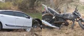 अनूपपुर* मध्य प्रदेश के अनूपपुर जिले के वेंकटनगर चौकी क्षेत्र अंतर्गत राइस मिल के पास सोमवार की दोपहर तेज रफ्तार कार ने सड़क किनारे खड़ी बाइक को जोरदार टक्कर मार दी। इस हादसे में बाइक सवार तीन लोग गंभीर रूप से घायल हो गए। सूचना मिलते ही पुलिस मौके पर पहुंची और घायलों को उपचार हेतु सामुदायिक स्वास्थ्य केंद्र जैतहरी भेजा गया, जहां प्राथमिक उपचार के बाद डॉक्टरों ने जिला चिकित्सालय अनूपपुर रेफर कर दिया।टक्कर तेज थी कि दोनो वाहन सड़क से बाहर जा पहुंचे।दुर्घटना के बाद कार चालक मौके से फरार हो गया।