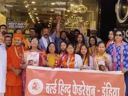 वर्ल्ड हिंदू फेडरेशन ने इंदौर में लेंसकार्ट के शोरूम के बाहर किया प्रदर्शन
