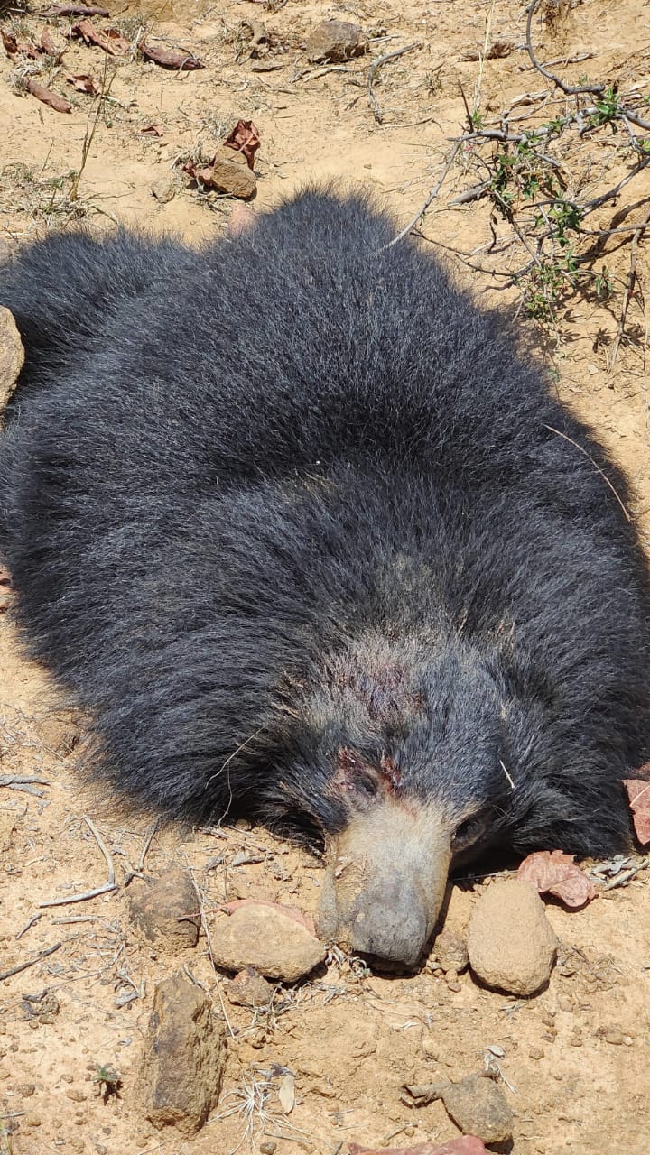 *आपसी संघर्ष में मादा भालू की मौत,दूसरी मादा भालू के दो शावक चढ़े पेड़ में