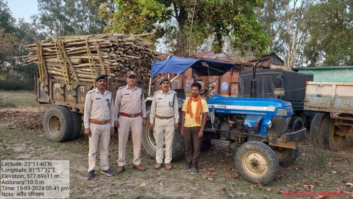 अनूपपुर* मुख्य वन संरक्षक वन वृत्त शहडोल एवम वनमंडलाधिकारी अनूपपुर के निर्देशन में व उप वनमंडलाधिकारी अनुपपुर के मार्गदर्शन में वन परिक्षेत्र कोतमा की टीम द्वारा दिनाँक 15.03.2024 को गश्ती के दौरान बीट देवरी अंतर्गत एक पावर ट्रैक कंपनी का नीले रंग का पंजीयन क्रमांक MP 18 AA 9943 की ट्राली में लोड नीलगिरी प्रजाति की टुकड़े में लोड लकड़ी के वाहन को रोककर चेक करने पर वाहन चालक लाल जी सिंह पाव निवासी सगरा जिला शहडोल से पूछताछ किया गया तो वाहन में लोड नीलगिरी लकड़ी के परिवहन संबंधी कोई वैध दस्तावेज नहीं पाया गया। तब टीम द्वारा नियमानुसार वैधानिक कार्यवाही करते हुए जप्त वाहन को फारेस्ट कैम्पस कोतमा में लाकर खड़ा कराया गया।